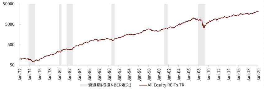 資料來源:Bloomberg,Nareit,NBER,中金公司研究部(1990年1月31日-2019年12月31日)