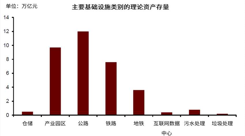圖表:中國REITs支持的主要基礎(chǔ)設(shè)施類別資產(chǎn)存量匯總