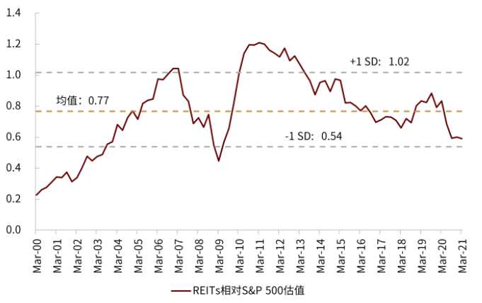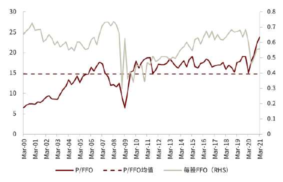 資料來源:Bloomberg,Nareit,中金公司研究部(2000年1月-2021年5月)