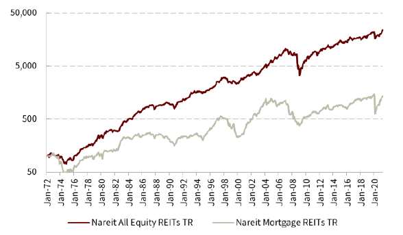 權(quán)益型REITs占據(jù)主導(dǎo),混合型REITs逐步退出舞臺。1971年,美國權(quán)益型REITs規(guī)模占總市值22.2%,抵押型REITs占38.2%。此后,在20世紀(jì)70年代間,石油危機導(dǎo)致美國經(jīng)濟進入高利率與供給過剩的通脹周期,在REITs融資成本提升的同時,大量抵押貸款的違約和房地產(chǎn)企業(yè)的破產(chǎn)提升了抵押型REITs的不良資產(chǎn)率,抵押型REITs陷入困境。同時,一方面從20世紀(jì)70年代以來美國經(jīng)歷了數(shù)次房地產(chǎn)繁榮,期間權(quán)益型REITs收益顯著高于抵押型,增進了對權(quán)益型REITs的需求。另一方面,1986年美國通過的《稅收改革法案》允許REITs內(nèi)部經(jīng)營管理房地產(chǎn),提高了房地產(chǎn)商對發(fā)行權(quán)益型REITs的積極性。權(quán)益型REITs在隨后30年間占比保持上升趨勢,逐漸成為美國REITs市場的主導(dǎo)。在2000年時,該比例達到96.9%的最高點。2001年至今,權(quán)益型REITs占比逐漸穩(wěn)定在93%左右?;旌闲蚏EITs則主要存在于市場早期,在1971年時約占全美REITs市場中三分之一的規(guī)模,但后續(xù)占比逐漸下降,2010年后其數(shù)量和規(guī)模已達不到統(tǒng)計標(biāo)準(zhǔn)。
