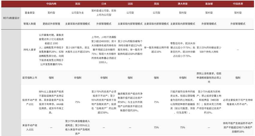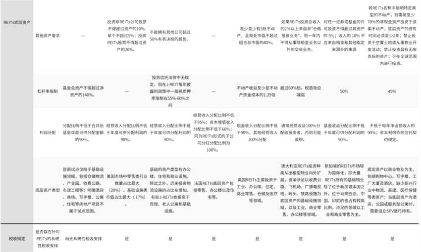 整體來看,我國REITs在底層資產(chǎn)類型,REITs的稅收制度和整體結(jié)構(gòu)上與國外有較大差異。