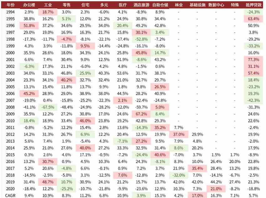 資料來源:Nareit,中金公司研究部(1971年-2020年)