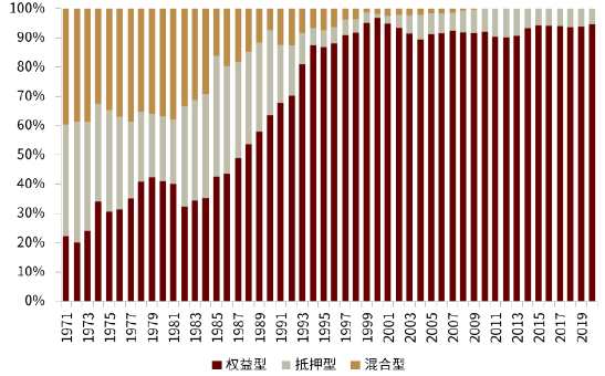 圖表:美國權(quán)益型REITs逐漸占據(jù)主導(dǎo)