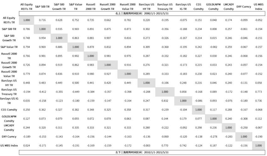 資料來源:Bloomberg,Nareit,中金公司研究部(2000年1月31日-2021年5月31日)