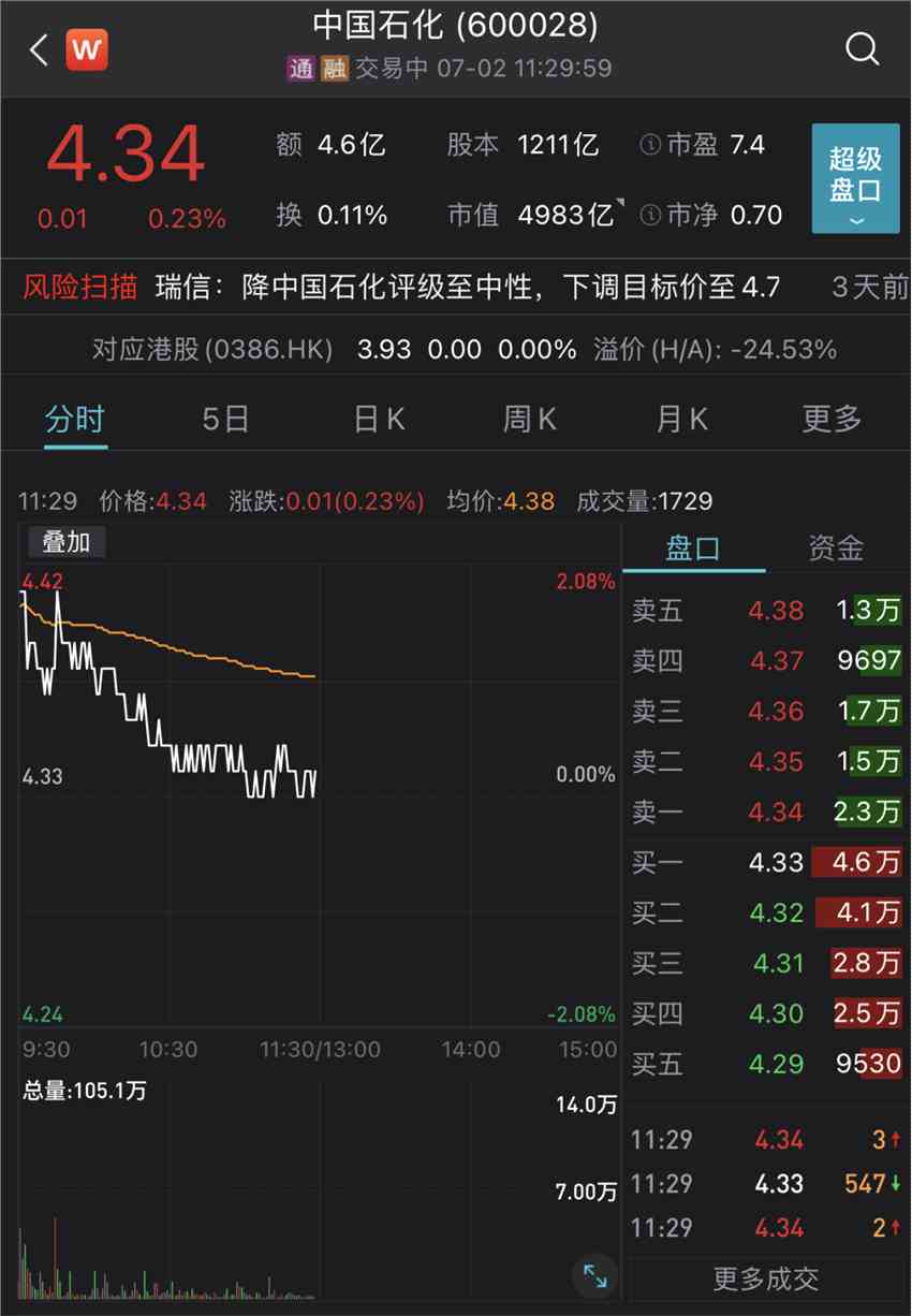 7月2日,中國(guó)石油、中國(guó)石化股價(jià)明顯高開,但臨近午間收盤股價(jià)下行。截至午間收盤,中國(guó)石油跌0.19%,中國(guó)石化漲0.23%。