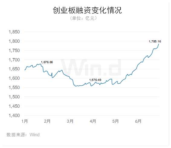 截止6月30日,創(chuàng)業(yè)板融資余額為1,785.16億元,不斷創(chuàng)出歷史新高,凸顯資金對創(chuàng)業(yè)板的青睞。