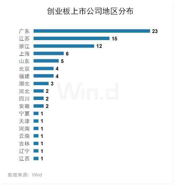 上半年,廣東新上市的創(chuàng)業(yè)板公司最多,達(dá)23家,遙遙領(lǐng)先。