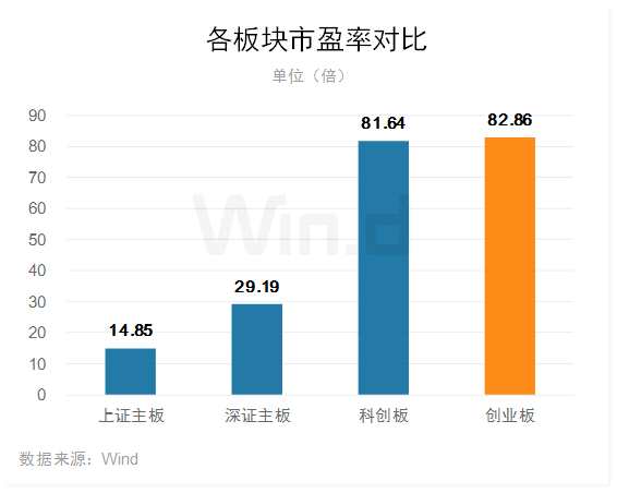 上半年末,創(chuàng)業(yè)板市盈率為82.86倍,高于上證主板、深證主板和科創(chuàng)板。經(jīng)過持續(xù)上漲,創(chuàng)業(yè)板個(gè)股估值溢價(jià)較高。