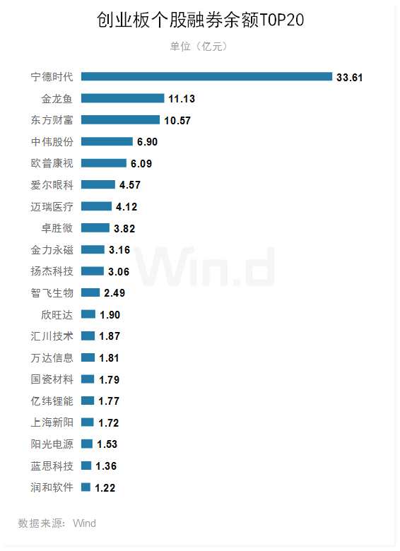 寧德時(shí)代融券賣出33.61億遙遙領(lǐng)先,股價(jià)位于歷史高位,該股資金分歧大。此外金龍魚、東方財(cái)富2家融券賣出都較大超10億元。