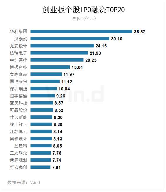 2021年上半年華利集團(tuán)以融資38.87億位居首位,此外【貝泰妮(300957)、股吧】、尤安設(shè)計(jì)、達(dá)瑞電子和中紅醫(yī)療融資規(guī)模也較大,均在20億以上。