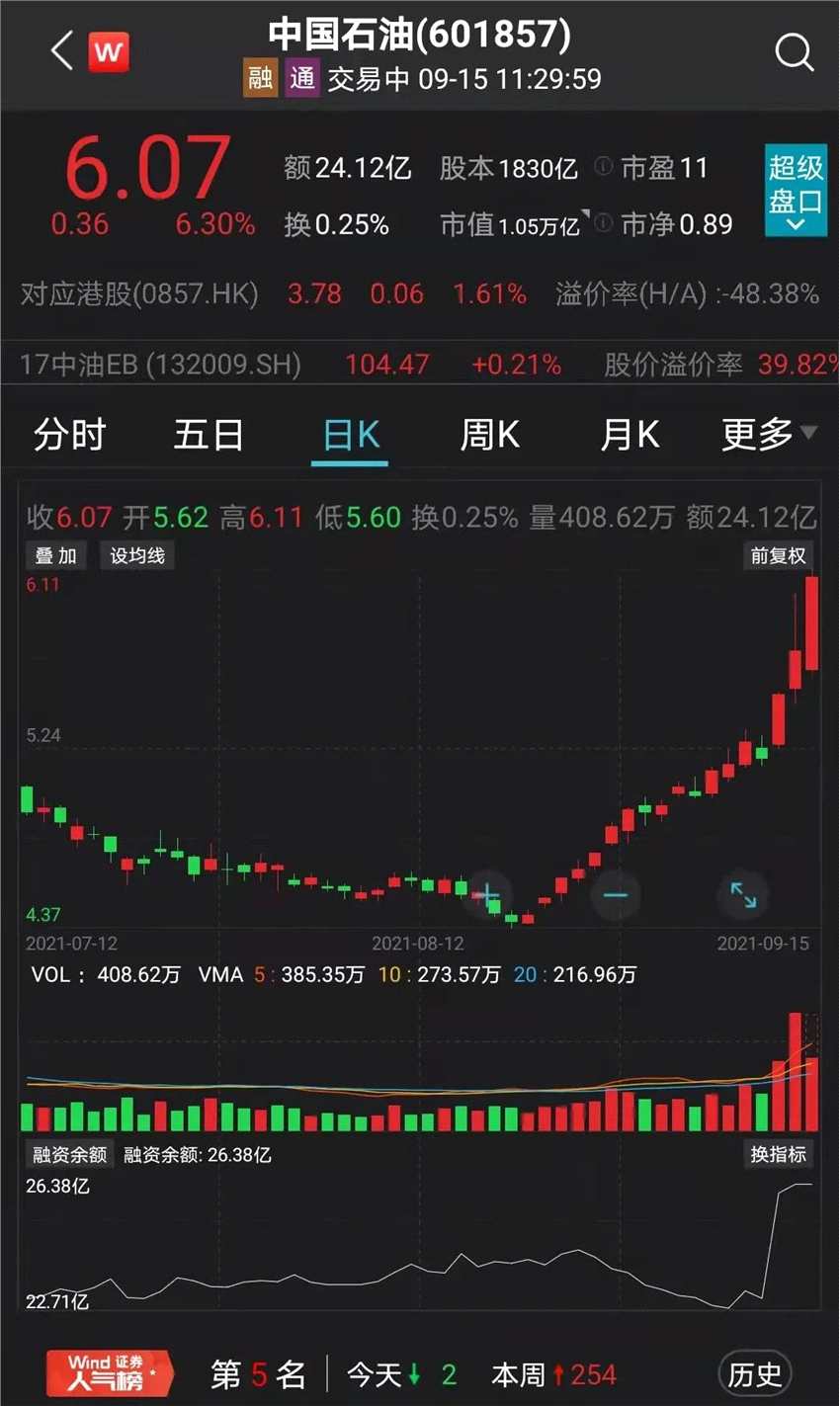 此外,中國(guó)石油早盤上漲6.3%,本周近3個(gè)交易日上漲16.96%。在中國(guó)石油的帶動(dòng)下,油氣板塊再度走強(qiáng),洲際油氣、海油發(fā)展等漲停。