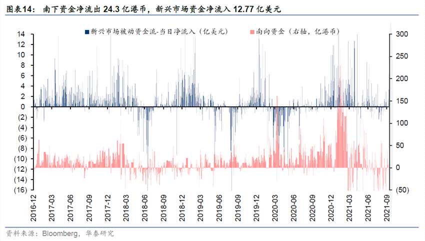 上周追蹤新興市場權(quán)益的前50大ETF凈流入為12.77億美元;南下資金凈流出24.3億港幣,較上一周凈流入(82.3億港幣)由流入轉(zhuǎn)為流出,從分行業(yè)南下資金的擺布來看,截至9月17日,材料(+17.76億港幣)、多元金融 (+13.68億港幣)板塊凈流入居前;耐用消費(fèi)品與服裝(-22.45億港幣)、制藥、生物科技與生命科學(xué)(-15.33億港幣)板塊凈流出居前。