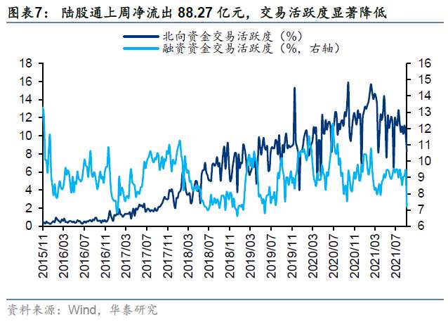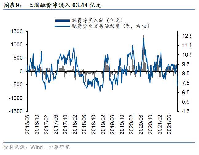 外資方面,上周北向資金凈流出88.27億元,北向資金主要凈流入電力設(shè)備及新能源(+33.72億)、計(jì)算機(jī)(+24.96億)、煤炭(+7.92億),主要凈流出食品飲料(-34.78億)、有色金屬(-29.27億)、基礎(chǔ)化工(-14.55億);公募方面,上周新成立偏股型基金559.99億份,較前一周(351.13億份)上升;杠桿資金方面,上周融資資金成交占兩市總成交比重為7.19%,較前一周明顯下降(9.42%),融資凈流入63.44億。產(chǎn)業(yè)資本方面,上周產(chǎn)業(yè)資本凈減持181.71億元。