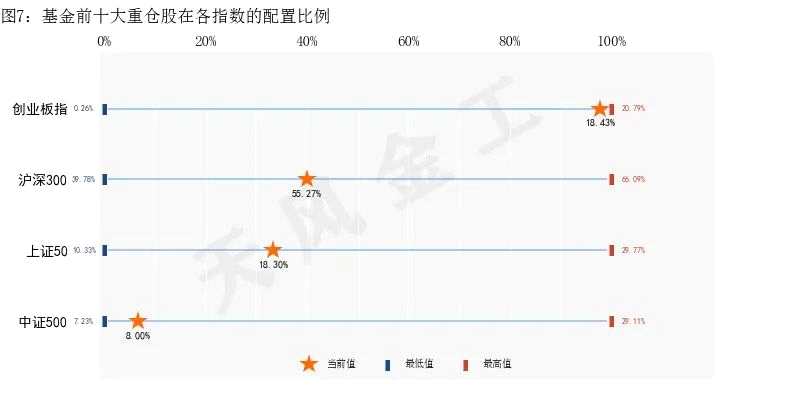 基金重倉股對指數的配置比例:基金對單個指數的重倉股市值除以基金對各主要市場指數的重倉股市值之和。