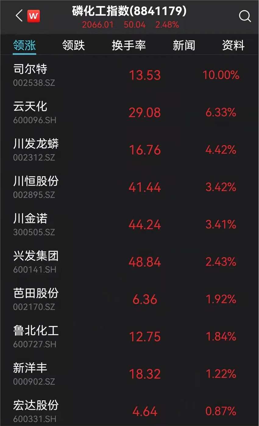 磷化工概念再度大漲