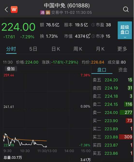 中國(guó)中免兩日市值蒸發(fā)近900億元