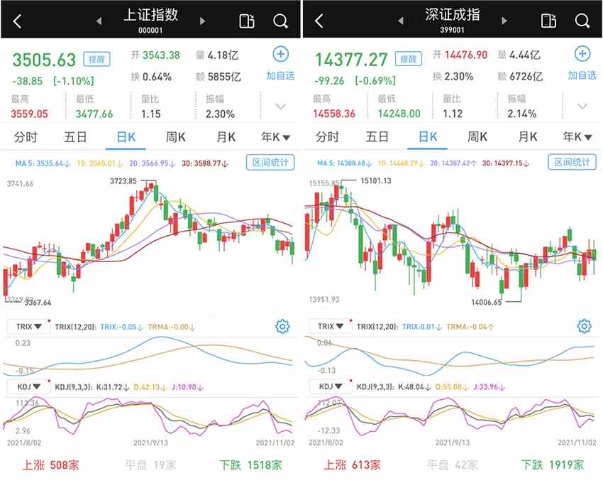 A股兩市11月2日開(kāi)盤(pán)漲跌互現(xiàn),在銀行、采掘和特鋼概念的走低帶動(dòng)下,滬指早早出現(xiàn)沖高回落的態(tài)勢(shì),而創(chuàng)業(yè)板指和深證成指表現(xiàn)相對(duì)較強(qiáng)。而臨近午市前的一波跳水,滬深兩市出現(xiàn)一波快速下跌。午后兩市進(jìn)一步走低,滬指更是一度失守3500點(diǎn)關(guān)口。