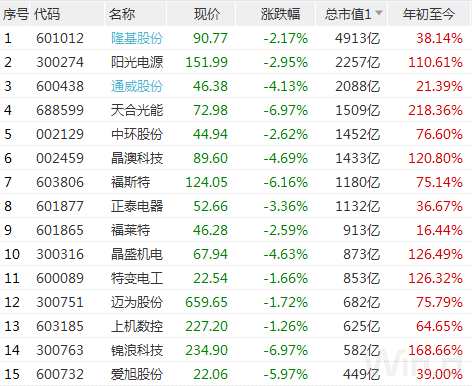 同樣火爆的還有光伏概念,市值靠前的龍頭股均大漲,陽光電源、天合光能、【晶澳科技(002459)、股吧】年度漲幅均超過100%。