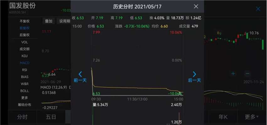 需要指出的是,這已經(jīng)不是國發(fā)股份第一次閃崩跌停了。今年5月17日,公司股價幾乎走出了跟24日一模一樣的行情,同樣是開盤不久便閃崩跌停,當日成交額達1.24億元。