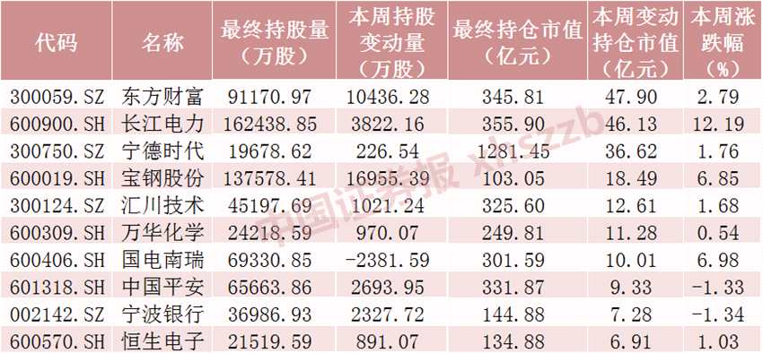 本周北向資金持股增加數(shù)前十