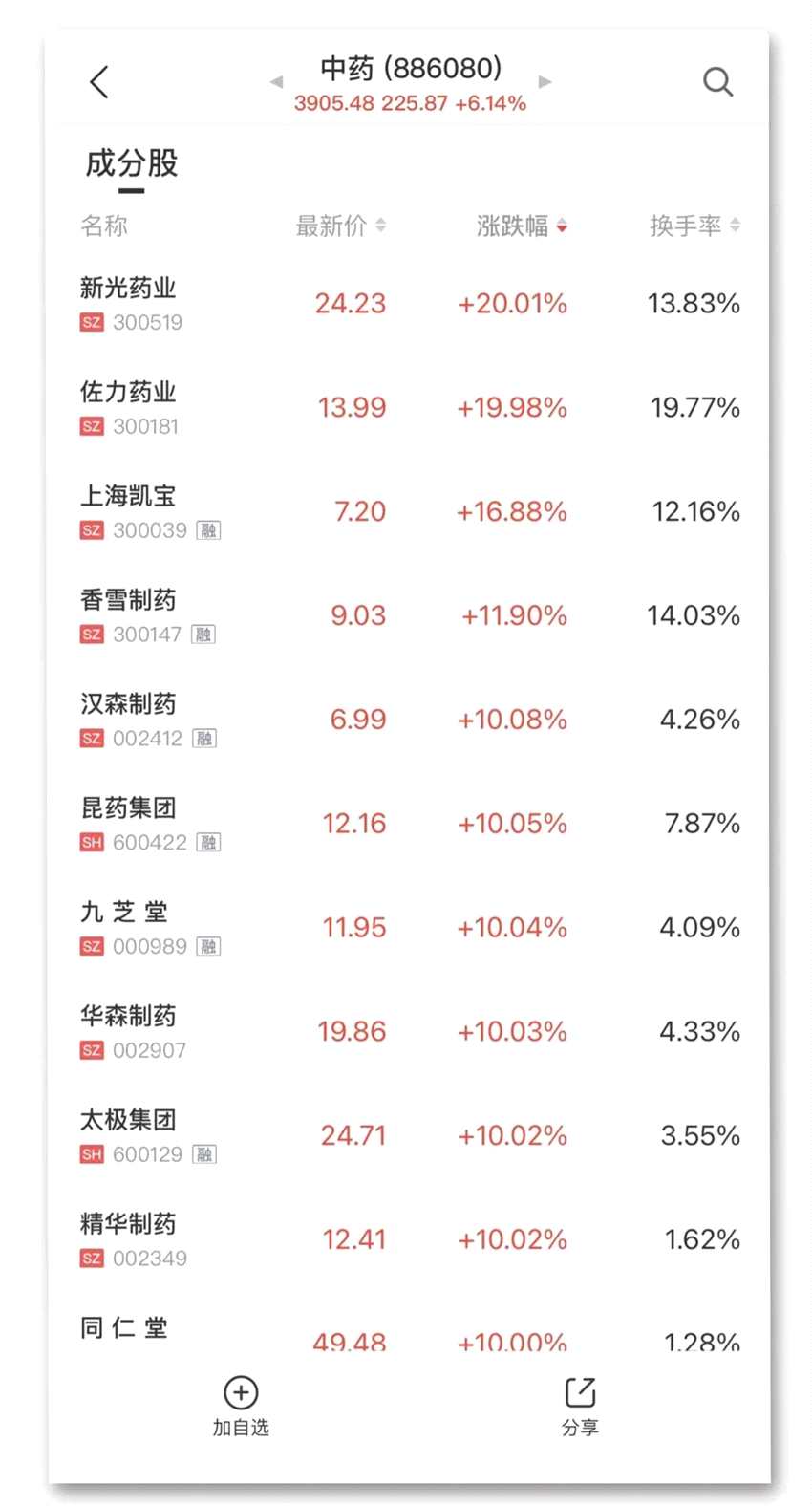 中藥板塊上演漲停潮