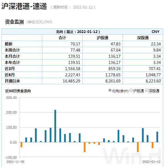 1月12日,北向資金凈買入70.17億元,本周凈買入77.48億元。雖然最近幾天A股市場波動仍然較大,但北向資金整體凈買入的趨勢并未轉(zhuǎn)向。而且 對滬股通標(biāo)的青睞程度遠(yuǎn)大于深股通標(biāo)的,凸顯了外資對A股低估值更加追捧,對投資者具有一定的參考價值。