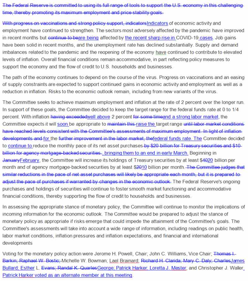 圖表:美聯(lián)儲政策聲明對比(2022年1月vs 2021年12月)