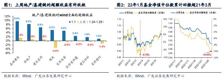 ?。ㄒ唬〢股節(jié)后開門紅,建議積極布局低PEG的科技股以及“穩(wěn)增長(zhǎng)”和“雙碳”交集的價(jià)值股。我們?cè)?1.12.5年度策略展望《慎思篤行》中提示了兩大關(guān)鍵“預(yù)期差”——(1)美國(guó)過(guò)去30年未見(jiàn)的滯脹將迫使美聯(lián)儲(chǔ)緊縮節(jié)奏超預(yù)期;(2)“穩(wěn)增長(zhǎng)”政策會(huì)兌現(xiàn),但一季度末的效果會(huì)低于樂(lè)觀投資者預(yù)期?;趯?duì)“穩(wěn)增長(zhǎng)”效果不確定性的擔(dān)憂,上周地產(chǎn)/基建鏈的超額收益有所收斂(下圖1)。不過(guò)節(jié)后,我們判斷3大因素的變化將支撐A股開門紅——(1)短期市場(chǎng)對(duì)于2022年美聯(lián)儲(chǔ)的加息預(yù)期已經(jīng)抬升到5次,加息預(yù)期已經(jīng)較為充分price-in,而首次加息和縮表指引則需要等到3月中旬美聯(lián)儲(chǔ)議息會(huì)議;(2)春節(jié)后到3月中上旬的兩會(huì)期間,“穩(wěn)增長(zhǎng)”政策大概率會(huì)密集落地,將緩解市場(chǎng)對(duì)于“穩(wěn)增長(zhǎng)”雷聲大雨點(diǎn)小的擔(dān)憂;(3)我們?cè)?月16日?qǐng)?bào)告中前瞻地提示了A股存在“負(fù)反饋”風(fēng)險(xiǎn):年初收益沒(méi)有安全墊可能觸發(fā)絕對(duì)收益產(chǎn)品的被動(dòng)減倉(cāng),對(duì)比21年2月“茅指數(shù)”微觀結(jié)構(gòu)惡化調(diào)整引發(fā)A股“負(fù)反饋”,21.3.24公募基金凈值中位數(shù)回撤8.2%,“負(fù)反饋”結(jié)束。截止1.28收盤,22年公募基金凈值中位數(shù)已經(jīng)回撤了10.0%,我們判斷絕對(duì)收益產(chǎn)品減倉(cāng)的“負(fù)反饋”基本結(jié)束。建議積極布局A股節(jié)后開門紅行情:除了我們前期提示并獲得顯著超額收益的地產(chǎn)/基建鏈以外,還可以重點(diǎn)關(guān)注低PEG的科技股以及“穩(wěn)增長(zhǎng)”和“雙碳”交集的價(jià)值股(國(guó)企傳統(tǒng)產(chǎn)能“低碳轉(zhuǎn)型”再加杠桿)。