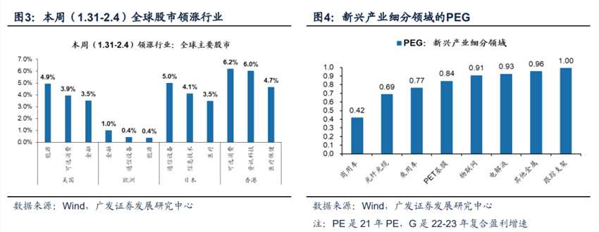?。ǘ┑蚉EG科技:美聯(lián)儲(chǔ)加息預(yù)期充分price-in,提供科技風(fēng)格反彈窗口。本周(1.31-2.4)全球主要經(jīng)濟(jì)體的股市中,價(jià)值(能源/金融/可選消費(fèi))和科技(通信設(shè)備/信息技術(shù)/資訊科技)普遍反彈。我們?cè)?.16《穩(wěn)增長(zhǎng)回調(diào),增持良機(jī)》提示:22年是盈利的下行期與美債利率中樞抬升的一年,對(duì)于增長(zhǎng)G和估值PE的兩端各有約束,因此今年P(guān)EG思路將更為占優(yōu)。一方面,年初以來(lái)全球低估值價(jià)值風(fēng)格共振。另一方面,我們判斷:隨著美聯(lián)儲(chǔ)加息預(yù)期階段性已經(jīng)較為充分price-in,全球科技風(fēng)格也將共振:即便1月美國(guó)非農(nóng)就業(yè)數(shù)據(jù)超預(yù)期提升美聯(lián)儲(chǔ)3月加息概率(含幅度),但2.4納指依舊上漲,且全球科技風(fēng)格也繼續(xù)共振反彈。從結(jié)構(gòu)上來(lái)看,美股科技股對(duì)G也高度敏感:Meta(臉書)業(yè)績(jī)低預(yù)期暴跌,而亞馬孫和SNAP業(yè)績(jī)超預(yù)期則大漲,由此可見(jiàn):本周并非全球科技股整體的共振,而是具備高增長(zhǎng)G預(yù)期的科技股的共振。