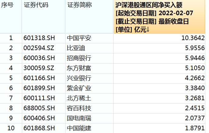北向資金2月7日加倉居前的股票分別為中國平安、比亞迪、招商銀行、東方財(cái)富、興業(yè)銀行,加倉金額分別為10.36億元、5.96億元、5.94億元、5.11億元、4.27億元。