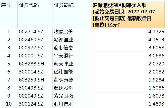 減倉居前的股票分別為牧原股份、贛鋒鋰業(yè)、浪潮信息、【平安銀行(000001)、股吧】、海天味業(yè),減倉金額分別為4.17億元、4.15億元、3.61億元、3.07億元、2.07億元。