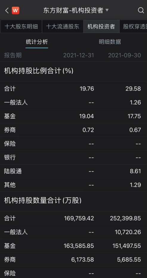 作為非銀金融板塊機(jī)構(gòu)第一大重倉(cāng)股,Wind數(shù)據(jù)顯示,截至2021年末,基金共計(jì)持有東方財(cái)富16.36億股,相較2021年三季度末增加1.21億股。如果2022年以來(lái)基金持股數(shù)量未發(fā)生變化,這意味著14日基金持倉(cāng)東方財(cái)富部分合計(jì)浮虧69.37億元。
