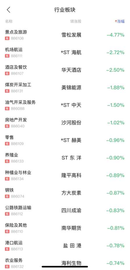 在賽道股反彈之時(shí),旅游、機(jī)場(chǎng)、酒店等板塊下跌。