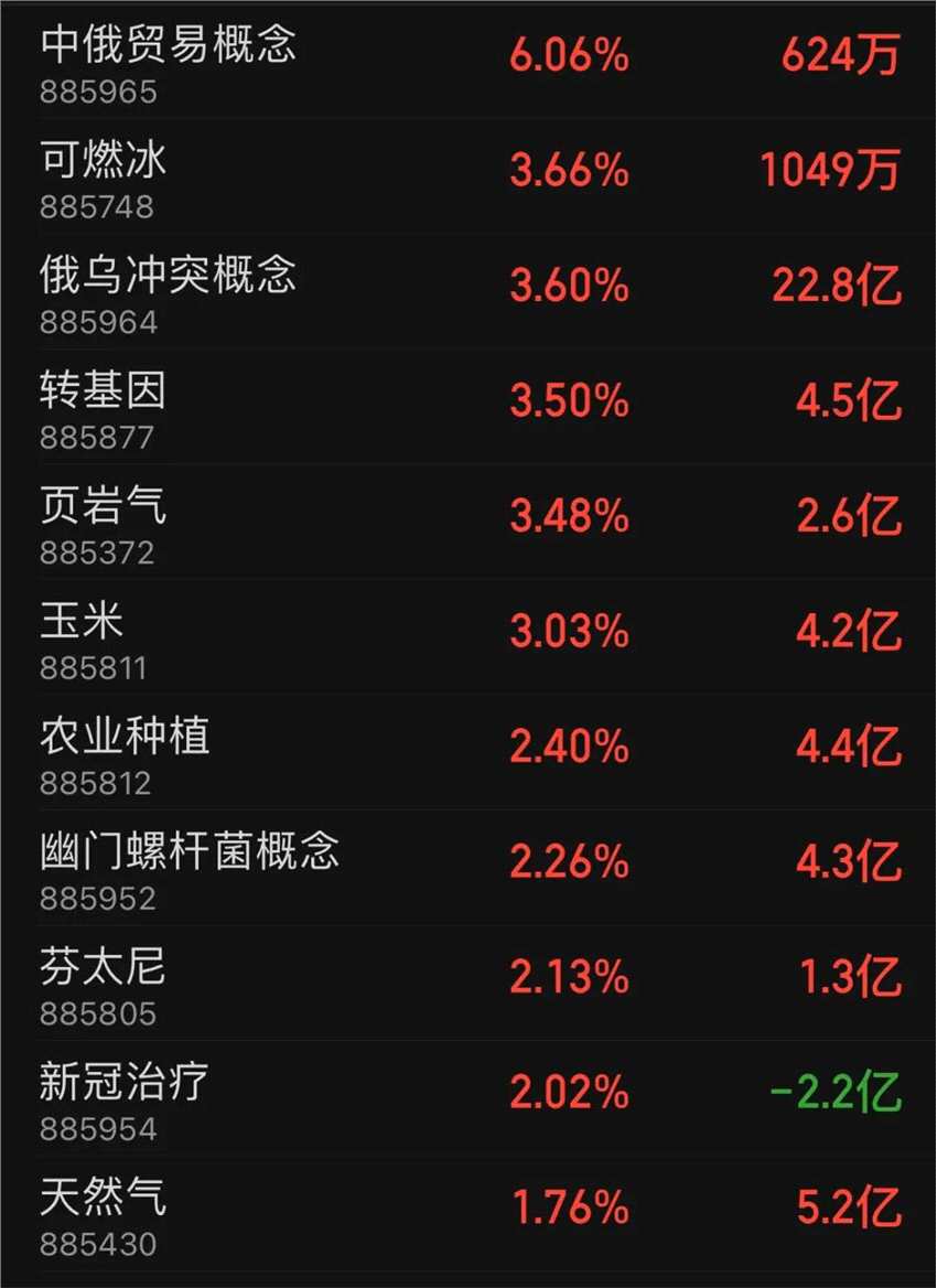 中俄貿(mào)易概念指數(shù)大漲超6%。錦州港、天順股份均是開盤漲停,4天4板。中成股份、長久物流、哈空調(diào)漲停,浙江東日、【歐亞集團(tuán)(600697)、股吧】等多股大漲。