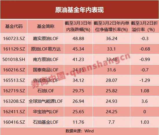 3月3日,原油市場受俄烏局勢影響再次大幅上揚,多只原油QDII基金隨之大漲,場內(nèi)價格創(chuàng)下近年來新高。