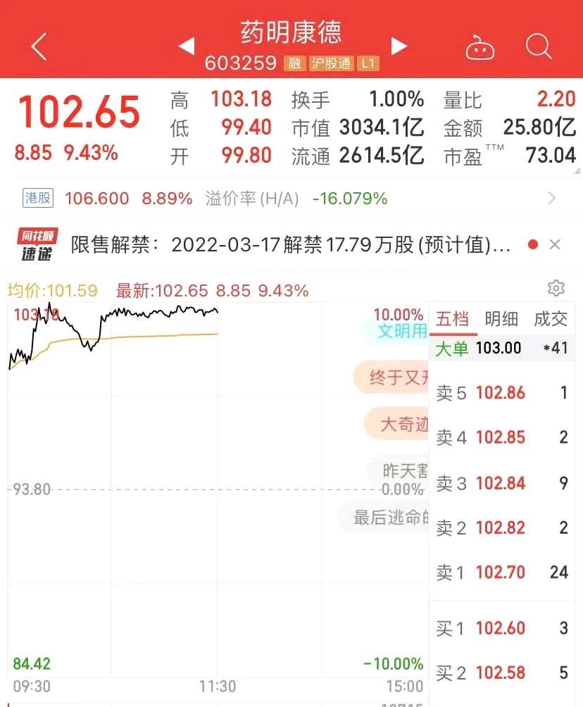 昨晚公布月度利好數(shù)據(jù),醫(yī)療CXO龍頭藥明康德(維權(quán))暴漲超9%,市值達(dá)到近3000億元。