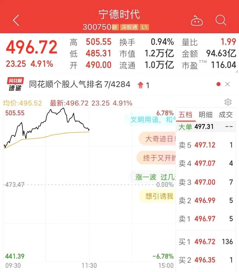 “重量級(jí)”明星個(gè)股紛紛大漲,寧德時(shí)代漲近5%。