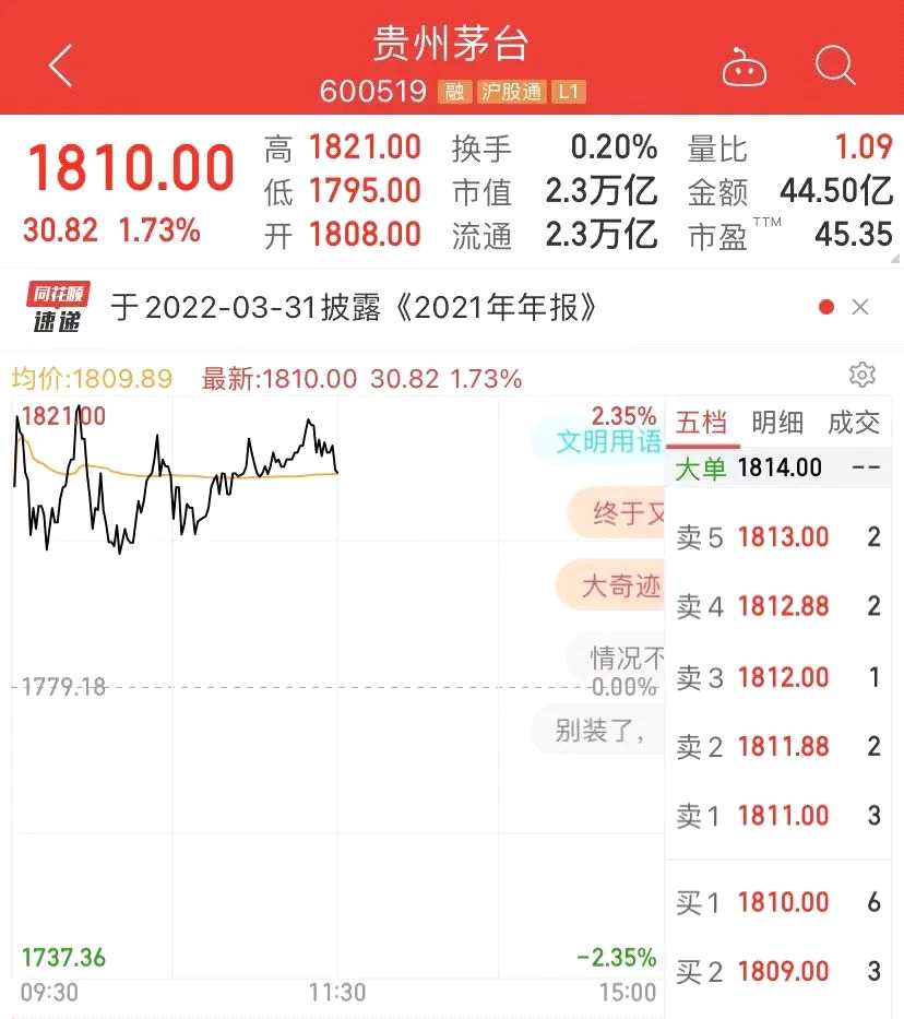 茅臺(tái)也大漲1.73%。白酒股當(dāng)中,金種子酒漲停,汾酒漲超7%,酒鬼酒、瀘州老窖等都漲超5%。