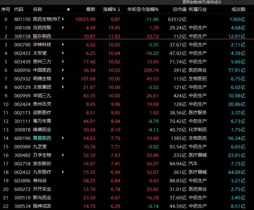 生物醫(yī)藥概念略有抬頭之意,但“力度不大”,今日微漲,而背后主要支撐力量在于中藥生產(chǎn)企業(yè),【華神科技(000790)、股吧】等多只中小市值個(gè)股漲停,而中藥生產(chǎn)龍頭企業(yè)片仔癀尾盤急跌,由紅轉(zhuǎn)綠;云南白藥也收跌。