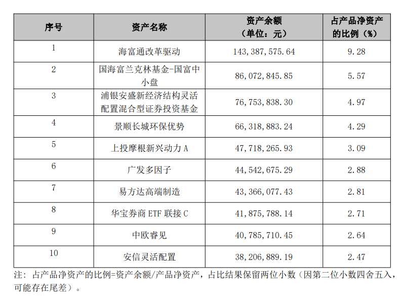 招銀理財(cái)招卓泓瑞全明星日開(kāi)一號(hào)前十大持倉(cāng)資產(chǎn)