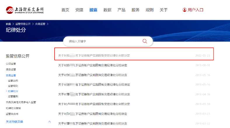 值得關(guān)注的是,上交所近期已許久未對個(gè)人投資者名下賬戶采取限制交易的紀(jì)律處分,上一波處分還是發(fā)生在2018年期間。