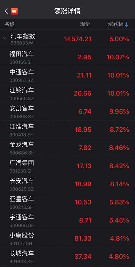 汽車產(chǎn)業(yè)鏈火熱,中通客車尾盤觸及漲停,上演地天板走勢(shì),福田汽車、江鈴汽車、安凱客車等多股漲停。