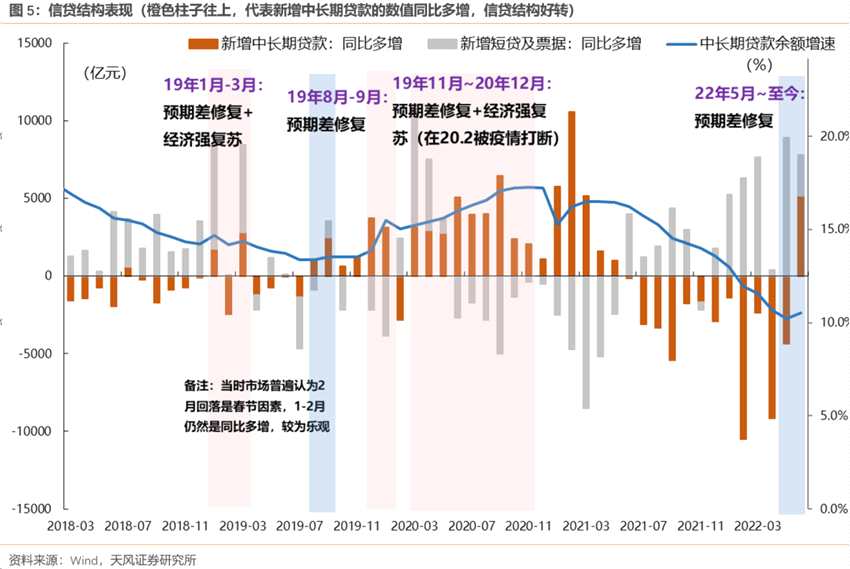這一階段雖然中長期貸款增速仍然沒有起來,但新增中長期貸款已經(jīng)出現(xiàn)同比多增,信貸結(jié)構(gòu)改善,市場開始出現(xiàn)經(jīng)濟(jì)沒有那么差的預(yù)期;