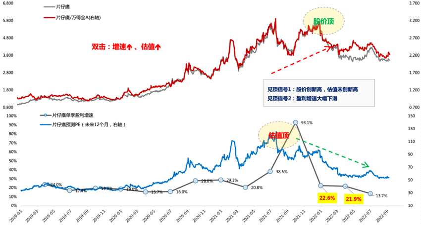 第二階段:賺業(yè)績的錢,對應(yīng)利潤增速見頂、估值見頂