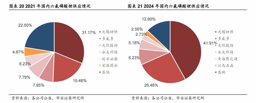 華安證券分析師尹沿技9月10日發(fā)布的研報(bào)顯示,2021年天賜材料、多氟多、天際股份(維權(quán))和永太科技國(guó)內(nèi)六氟磷酸鋰供應(yīng)占比分別為31.17%、19.48%、7.96%和7.79%,但產(chǎn)能第一的天賜材料六氟磷酸鋰基本以自用為主。