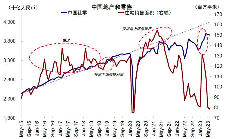 圖表27:中國零售修復(fù)或需看到地產(chǎn)銷售回暖,尤其是地產(chǎn)鏈后周期商品