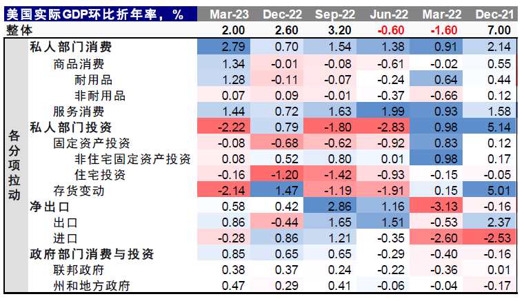 圖表8:美國一季度 GDP 環(huán)比年化增長從此前的1.3%大幅上修至終值的2%