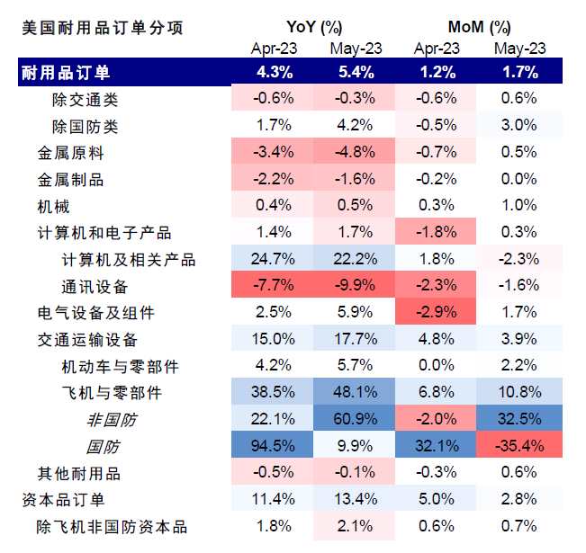 圖表9:美國5月耐用品整體訂單及核心資本品訂單超預(yù)期抬升