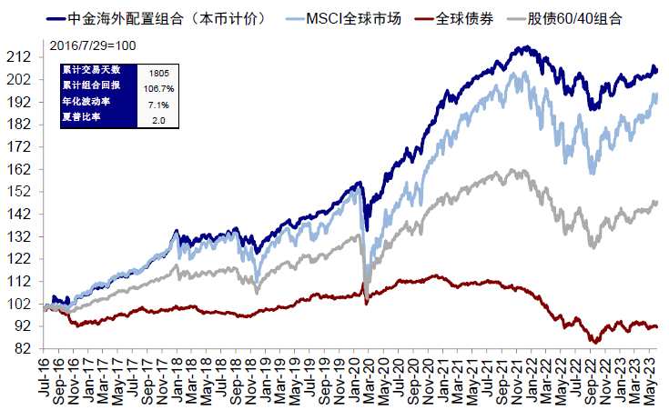 6月,我們的海外資產(chǎn)配置組合上漲1.6%(本幣計價);領(lǐng)先于全球債市(0.04%,美銀美林全球債券指數(shù),美元計價),但弱于全球股市(5.5%,MSCI全球指數(shù),美元計價)和大宗商品(2.3%,標(biāo)普高盛商品指數(shù),美元計價)。分項看,美國、新興等主要市場貢獻(xiàn)明顯,VIX為主要拖累。自2016年7月成立以來,該組合累積回報106.7%,夏普比率2%。