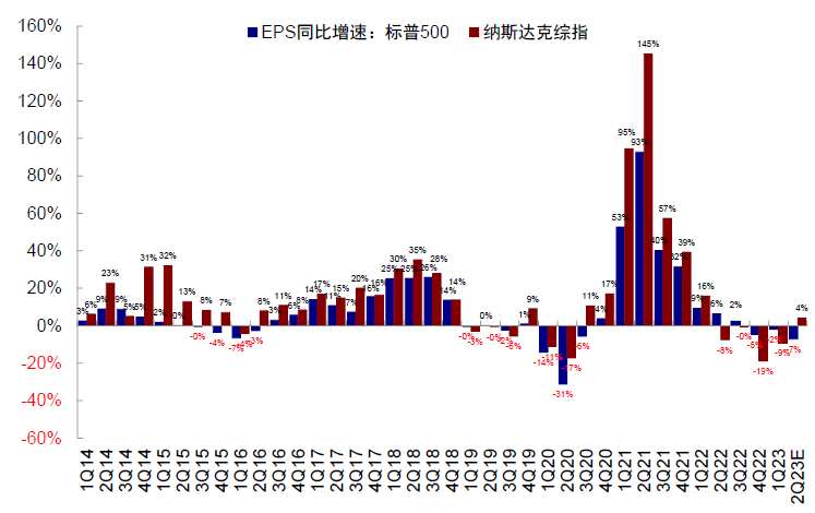 圖表12:當(dāng)前市場預(yù)期二季度標(biāo)普500盈利增速或進(jìn)一步回落至-7.1%納斯達(dá)克綜指盈利增速或快速轉(zhuǎn)正
